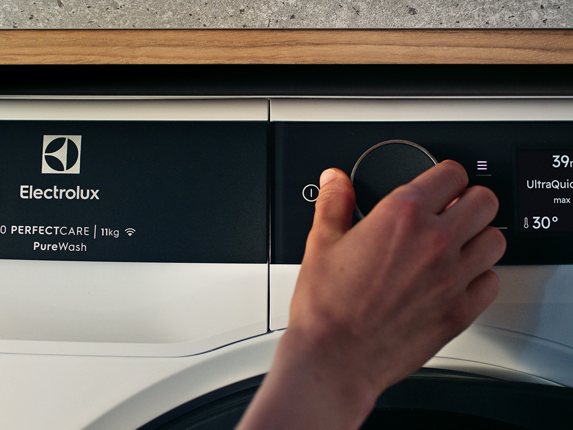 *Remiantis išoriniu 59 dėmių pašalinimo bandymu, naudojant "UltraQuick" 39 min. programą su 4 kg skalbinių, palyginti su lyderiaujančiais prekių ženklais Europoje, pasirinkus 1 val. trumpas programas ir 30 °C temperatūrą.