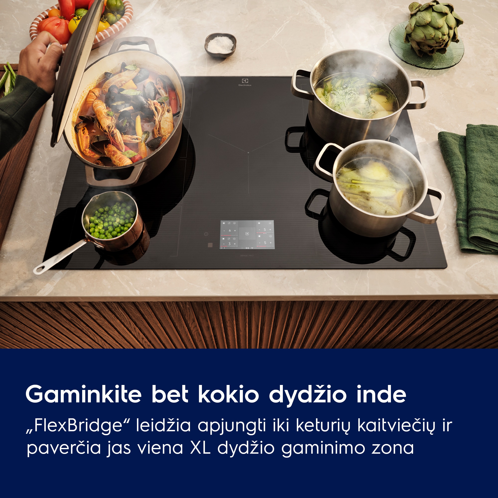 Didelės ar mažos keptuvės – „FlexBridge“ funkcija tiks bet kokiam patiekalui