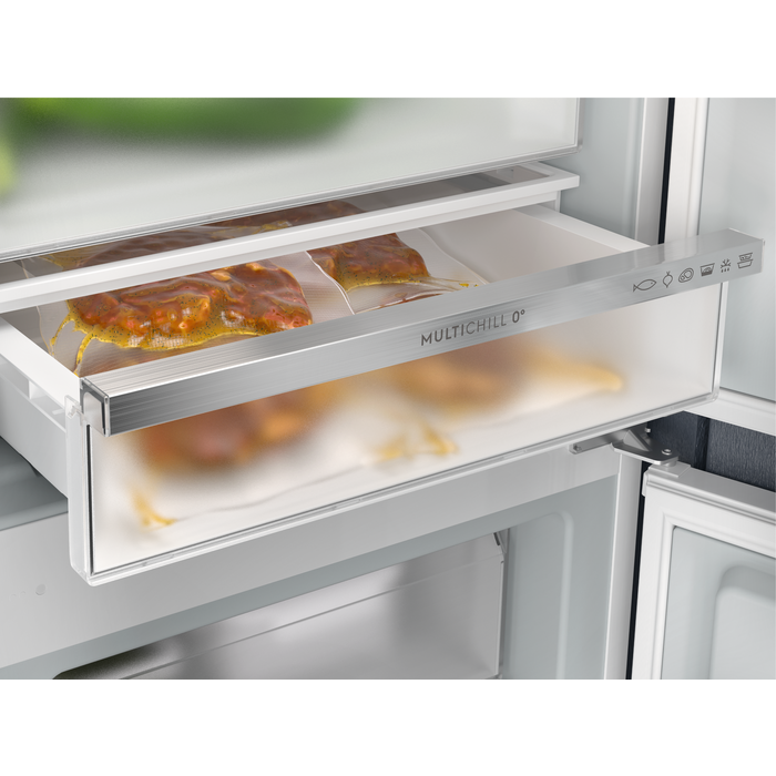 Pritaikomas stalčius „Multichill 0°C“ leidžia paruošti gardesnį maistą ir tinkamai šaldytuve laikyti mėsą ar žuvį. Pasinaudokite programėle ir atvėsinkite gėrimus, saugiai atšildykite užšaldytus produktus ar parinkite tinkamus nustatymus maisto likučiams laikyti.