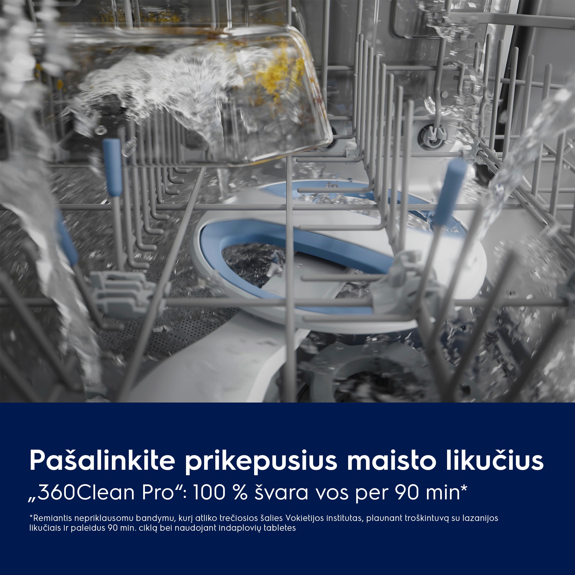 *Remiantis nepriklausomu bandymu, kurį atliko trečiosios šalies Vokietijos institutas, plaunant troškintuvą su lazanijos likučiais ir paleidus 90 min. ciklą bei naudojant indaplovių tabletes