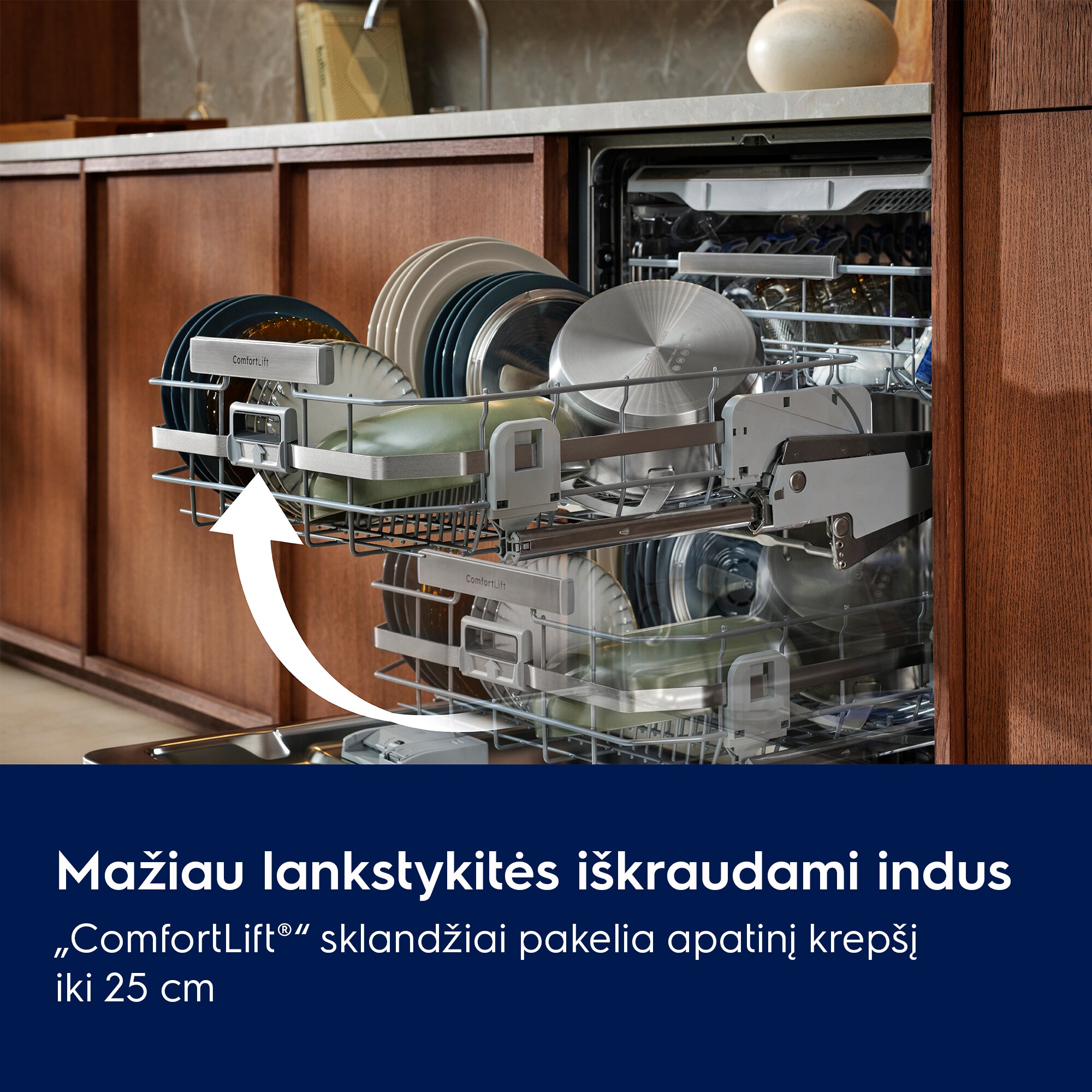 *Remiantis nepriklausomu bandymu, kurį atliko trečiosios šalies Vokietijos institutas, plaunant troškintuvą su lazanijos likučiais ir paleidus 90 min. ciklą bei naudojant indaplovių tabletes