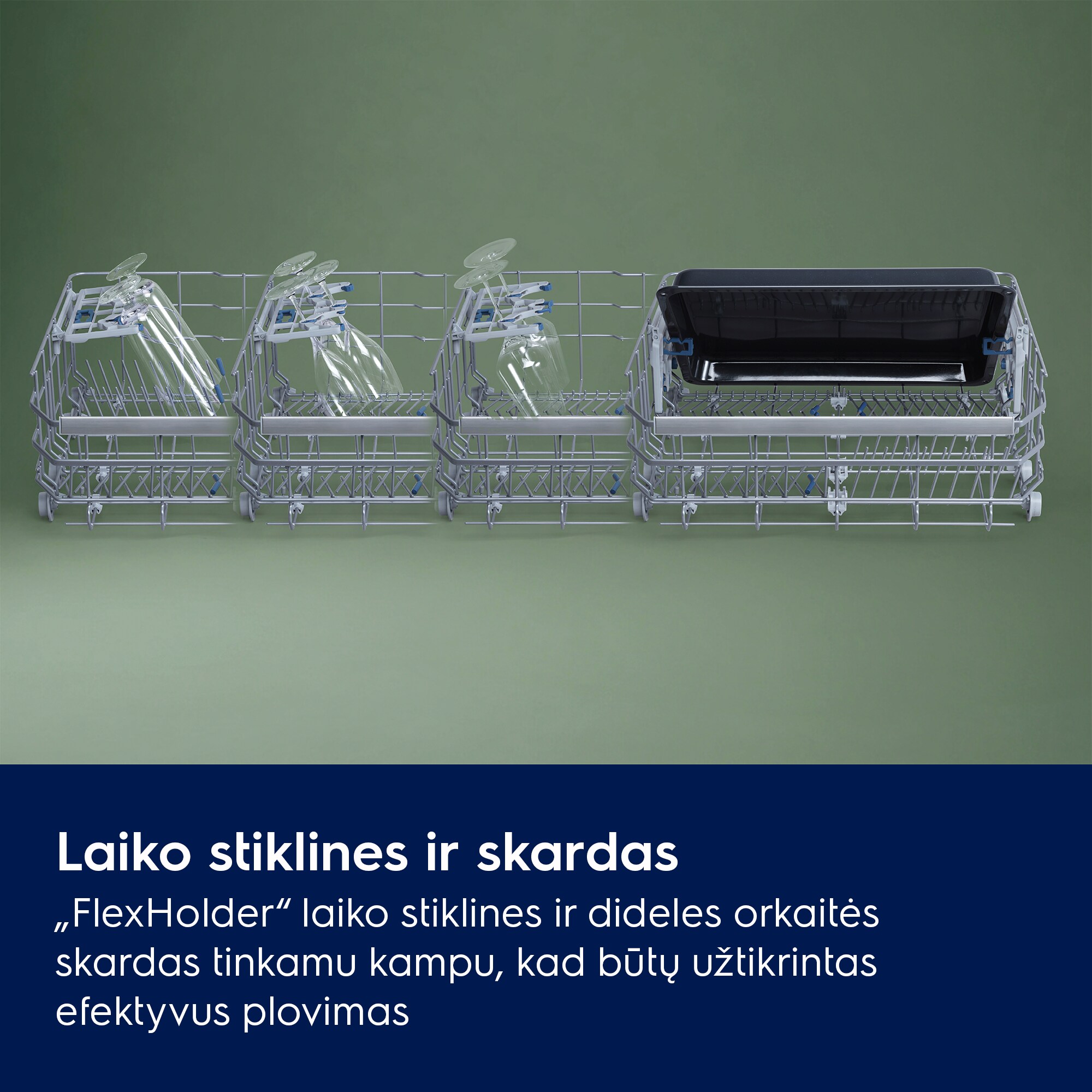 Lankstūs laikikliai orkaitės padėklams, aukštoms stiklinėms ir taurėms