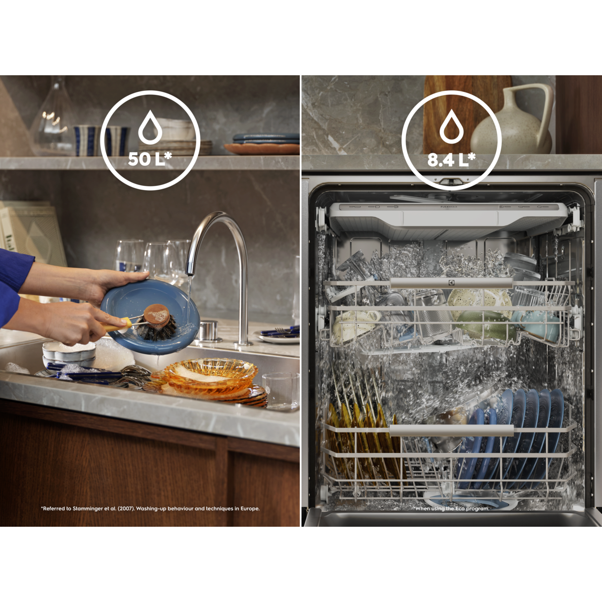 *Remiantis nepriklausomu bandymu, kurį atliko trečiosios šalies Vokietijos institutas, plaunant troškintuvą su lazanijos likučiais ir paleidus 90 min. ciklą bei naudojant indaplovių tabletes
