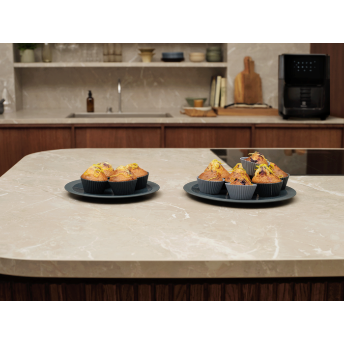 Viena ant stalviršio pastatoma orkaitė yra maksimaliai universali – turi 5 kepimo režimus: gruzdinimo karštu oru, kepimo, pašildymo, džiovinimo ir sukamojo iešmo. Didelė 12 l talpa šeimos valgiams. Durelės stiklinės, todėl galite patikrinti maistą jų neatidarę.