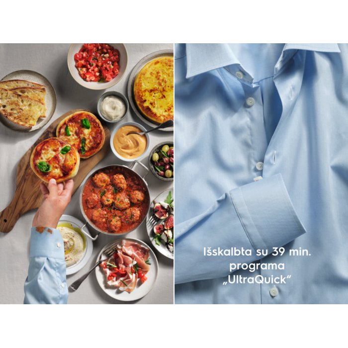*Programa „UltraWash“ 30 ºC temperatūroje kruopščiai išskalbia skalbinius ir sutaupo 30 % energijos, palyginus su 40 ºC medvilnės skalbimo programa.