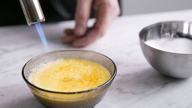 Kai orkaitė paruošta, galite į ją dėti crème brûlée. Kepkite 30 minučių arba kol kremas viduryje bus tik šiek tiek virpės. Po to vėsinkite šaldytuve ne trumpiau kaip 3 valandas, kol sustings. Crème brûlée viršų apibarstykite cukrumi ir karamelizuokite degindami degikliu. Tai desertui suteiks garsiojo traškumo. Bon appétit!