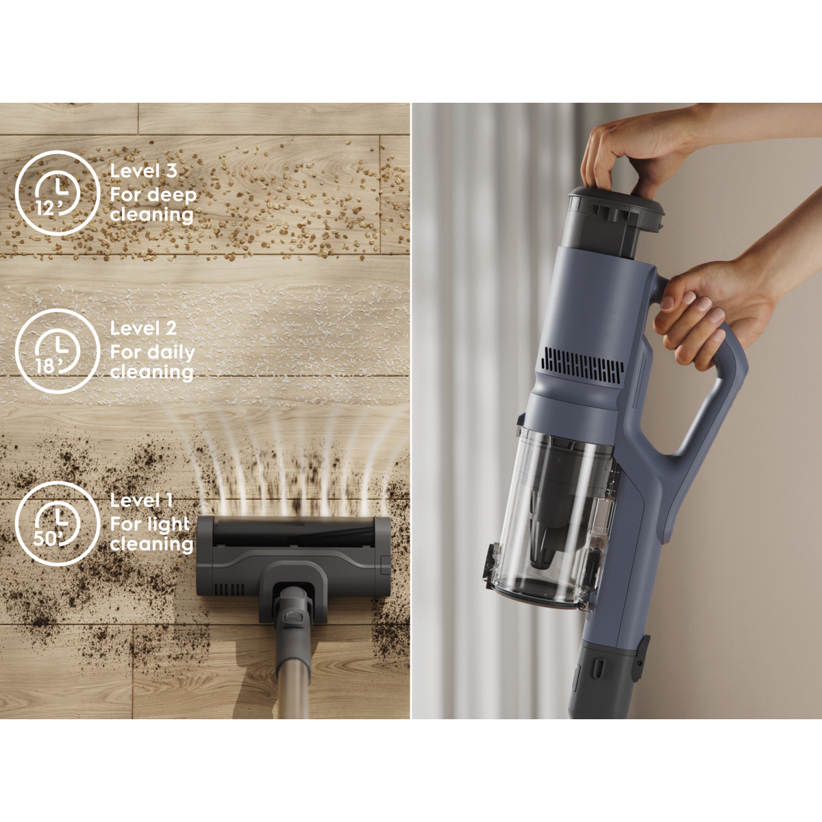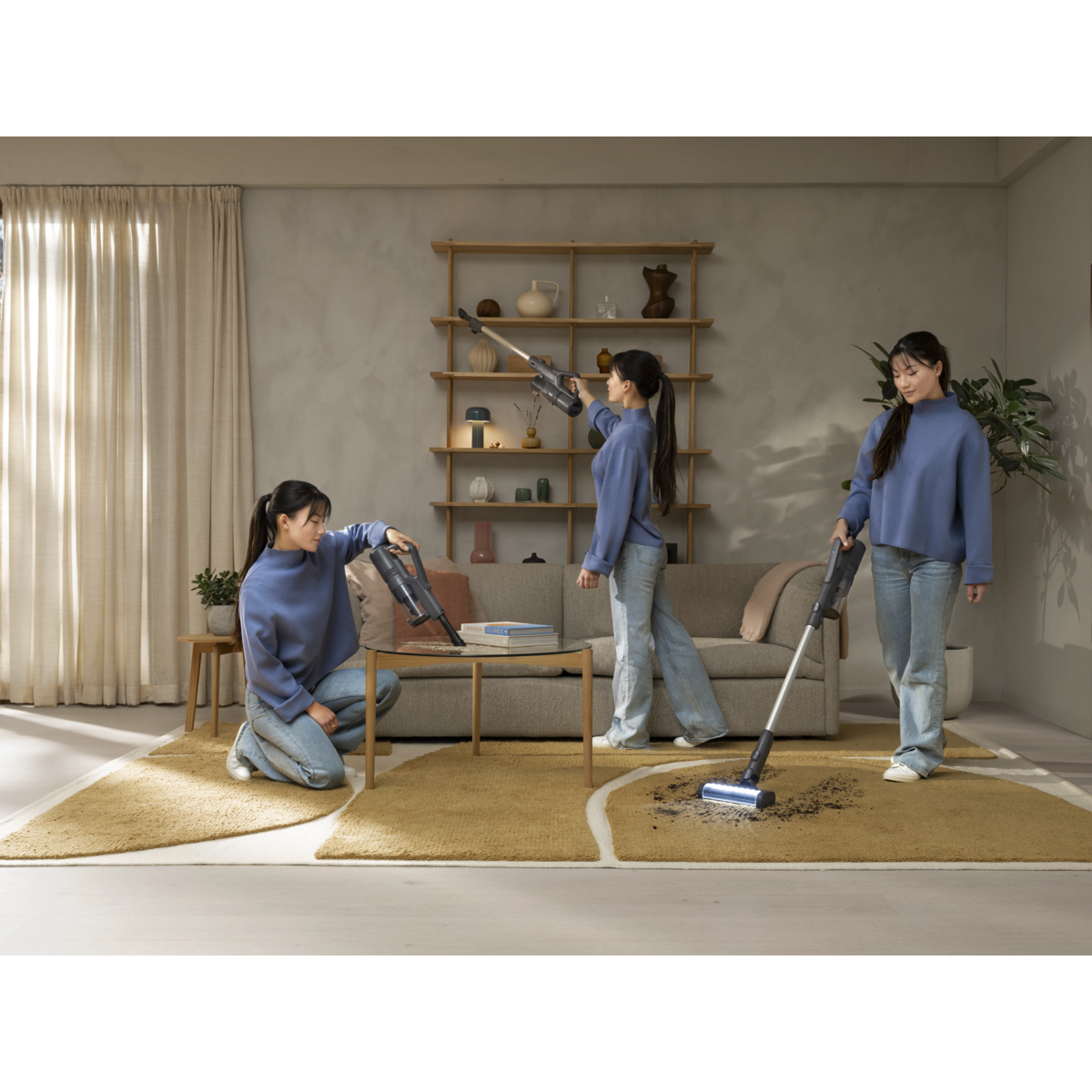 Galingas siurblys surenka iki 99 %* dulkių nuo kietųjų grindų dangų. Prietaisas yra belaidis ir lengvas, tad galite nevaržomai judėti, be to, jį ištuštinsite vienu veiksmu – greitai ir lengvai. Šis siurlbys veikia sklandžiai ir efektyviai.
