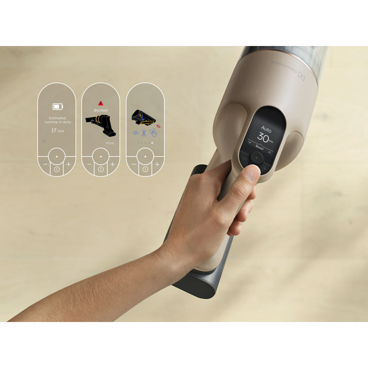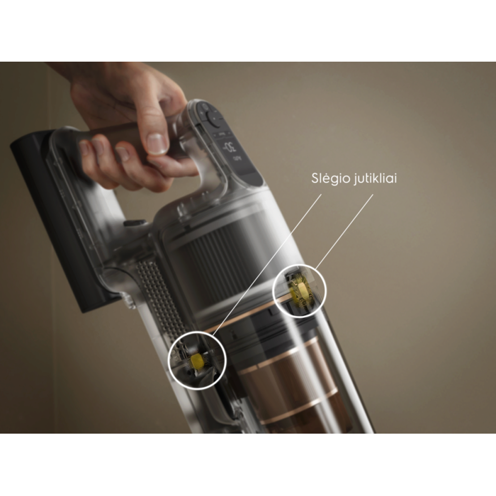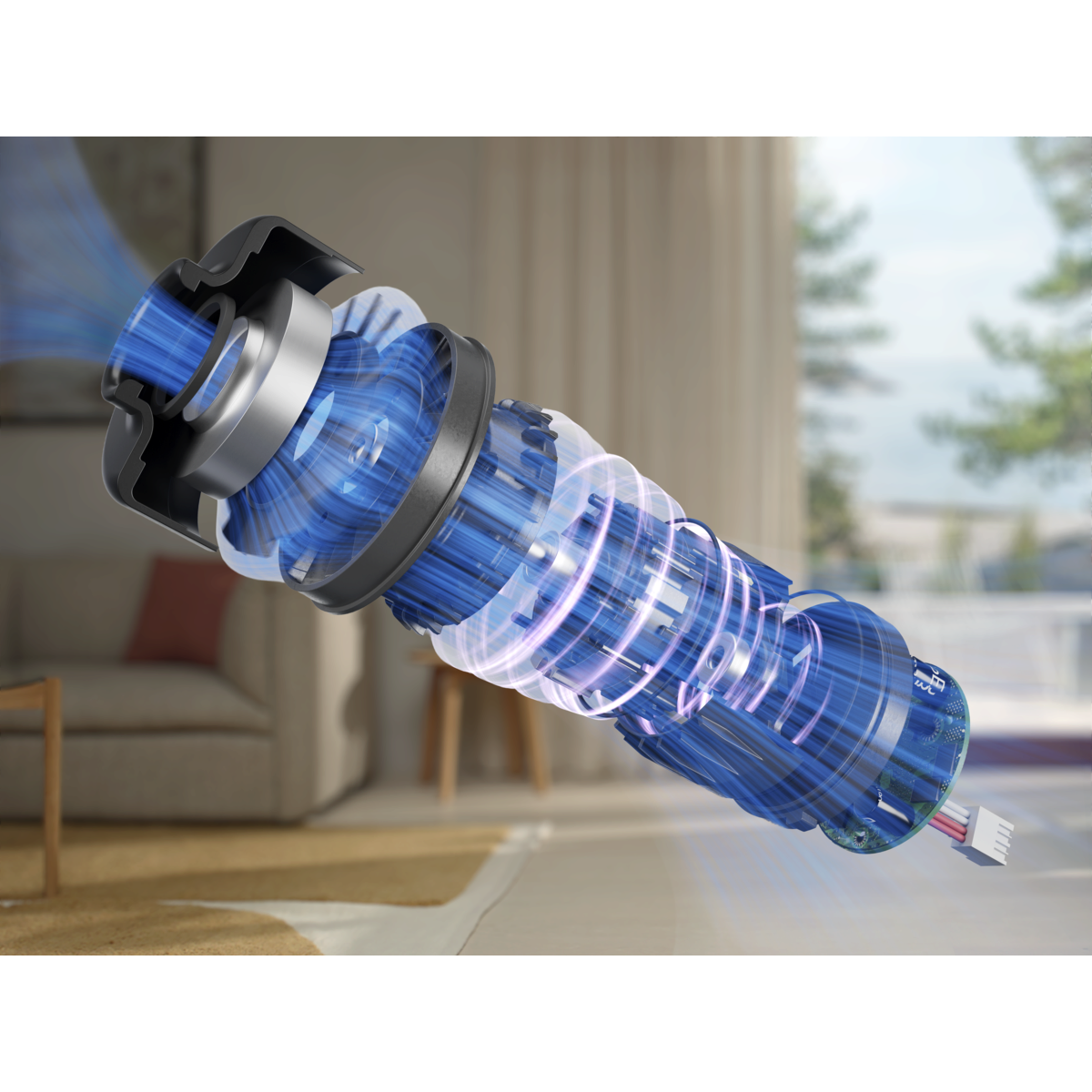 *Veikimo laikas išmatuotas greituoju režimu. Dulkių surinkimas išbandytas pagal IEC 62885-2 standarto 5.2 ir 5.3 skirsnius, atsižvelgiant į vidutinį dulkių surinkimo rezultatą (abiem kryptimis) ant kietų grindų. Rezultatai pagrįsti palyginus su šešiais perkamiausiais rankiniais dulkių siurbliais, keturiose Europos šalyse kainuojančiais daugiau nei 490 € (2024 m. spalio – 2025 m. rugsėjo laikotarpiu).