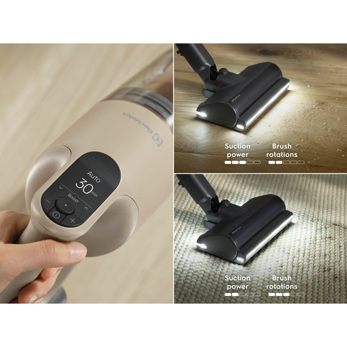 Ilgai išliekantis efektyvumas. 900 serijos belaidis dulkių siurblys su „AllFloor Power“ antgaliu – vienintelis belaidis siurblys, kuriame ilgiausias veikimo laikas savo kategorijoje dera su iki 100 % dulkių surinkimu.*