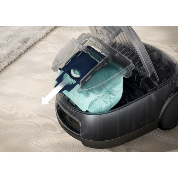 Dulkių siurblyje su maišeliais „Hygienic 600“ yra automatinis grindų valymo antgaliu režimas ir specializuotas filtras smulkioms dalelėms sulaikyti – rezultatai akivaizdūs.